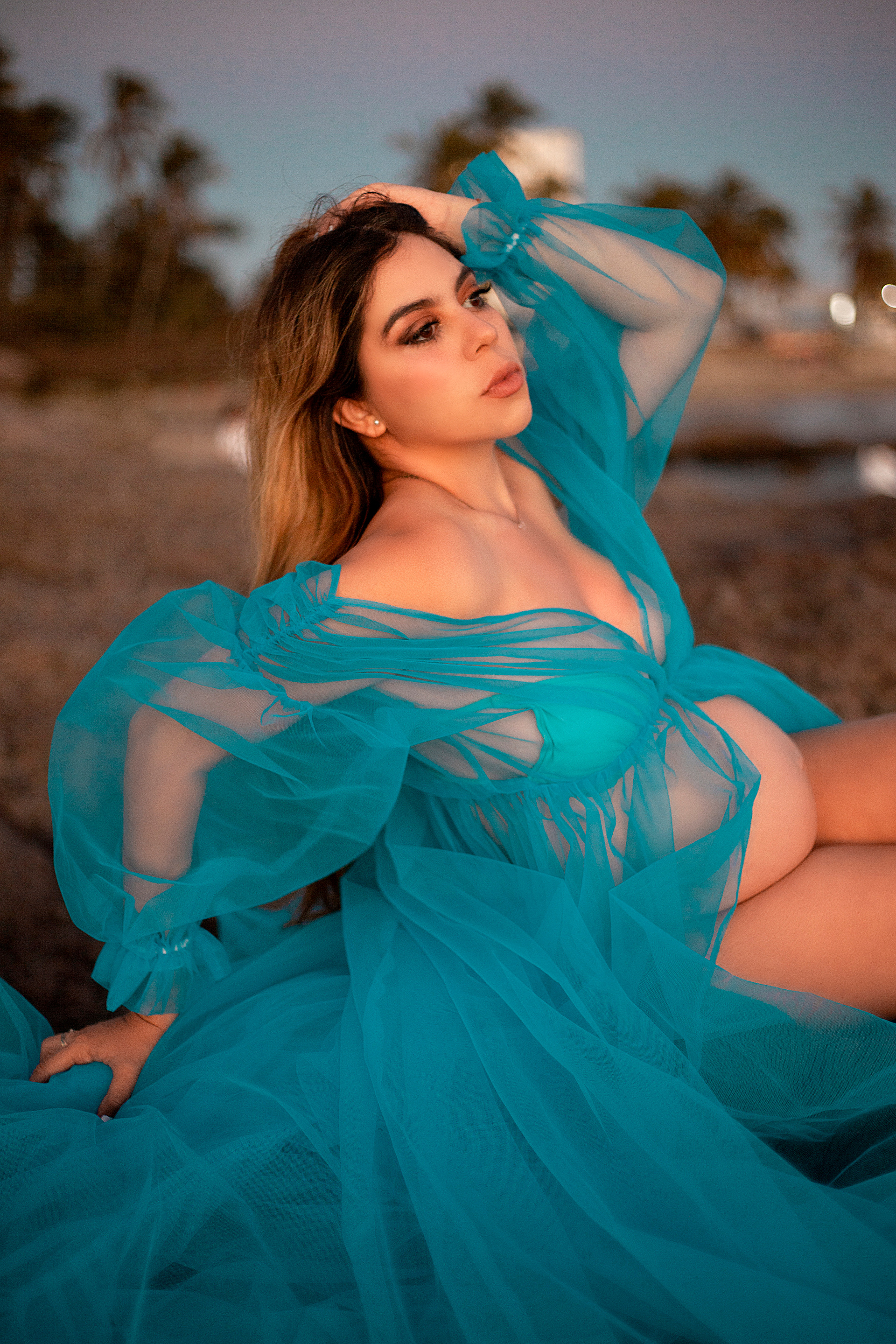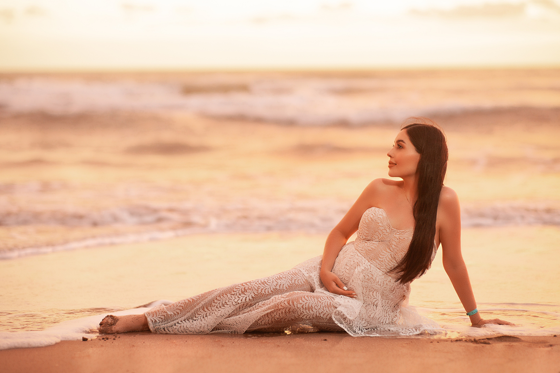 Professional maternity sessions with designer gowns included - Beach or studio - Express delivery in 48h